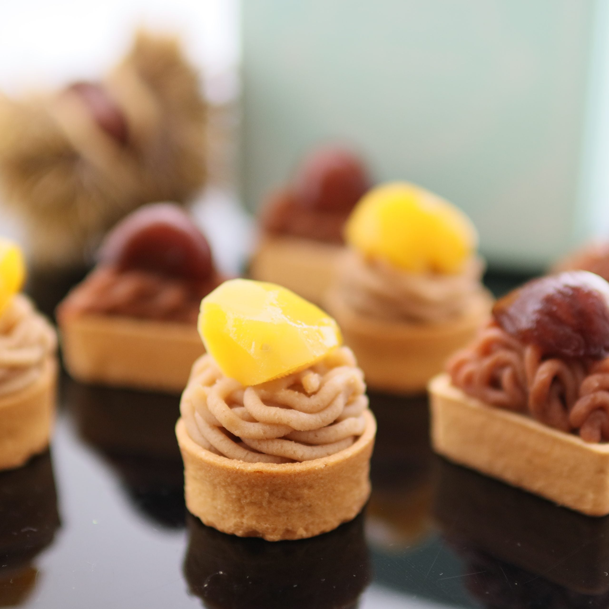 2種類のマロンペーストを一度に味わえる贅沢なミニモンブランタルトです。