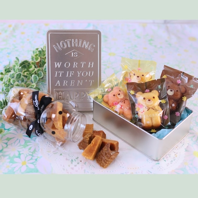 和歌山有田みかん:米粉(京都府産)、発酵バター、アーモンド、粉糖、転化糖、濃縮みかん果汁、有田みかん果皮/香料、酸味料、パプリカ色素